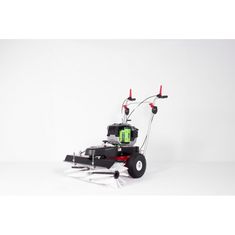 Balayeuse Limpar 81 EGO avec largeur de travail 80 cm, brosse poly 10 rangées, 3 vitesses, roue libre 360°, compatibilité EGO 56V et accessoires en option. Idéale pour les surfaces extérieures moyennes.